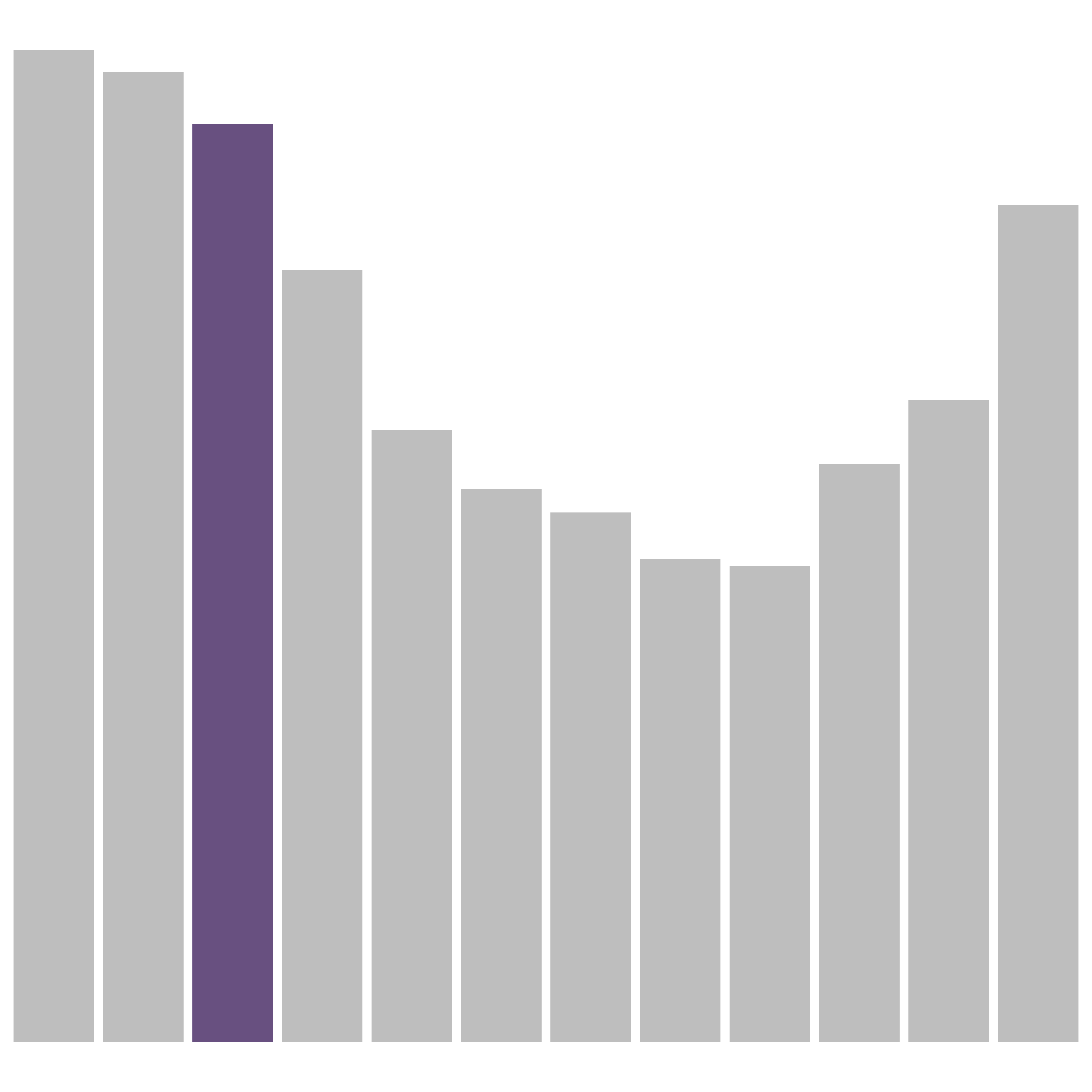 So visually it’s a bit of a mess with the default grey background but the highlighted colour stands out which is good so let’s just strip the plot of everything including the legend so we can just see the bars: